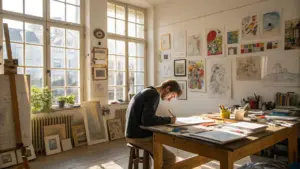 Immerse yourself in the inspiring atmosphere of the Maison des Echevins. Our artist residency program offers a unique opportunity to create, exhibit, and share your work within a beautifully restored 17th-century setting. Join a community that fosters artistic innovation and cultural dialogue.